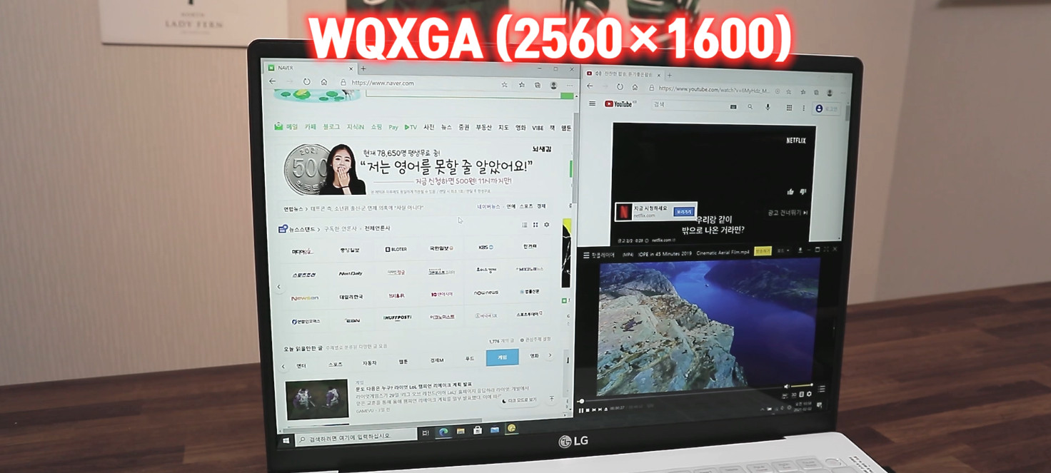 일반적인 15.6인치 FullHD 해상도의 노트북에서는 그램만큼의 효율적인 멀티태스킹이 되지 않습니다. 이 부분은 그램이 단순히 0.4인치 1.4인치 더 큰 디스플레이를 가져서 그런 것이 아닌 FullHD 보다 한 단계 더 높은 해상도를 가졌기 때문에 얻을 수 있는 작업 환경으로 그램16, 그램17의 특별한 장점이라고 말할 수 있습니다.