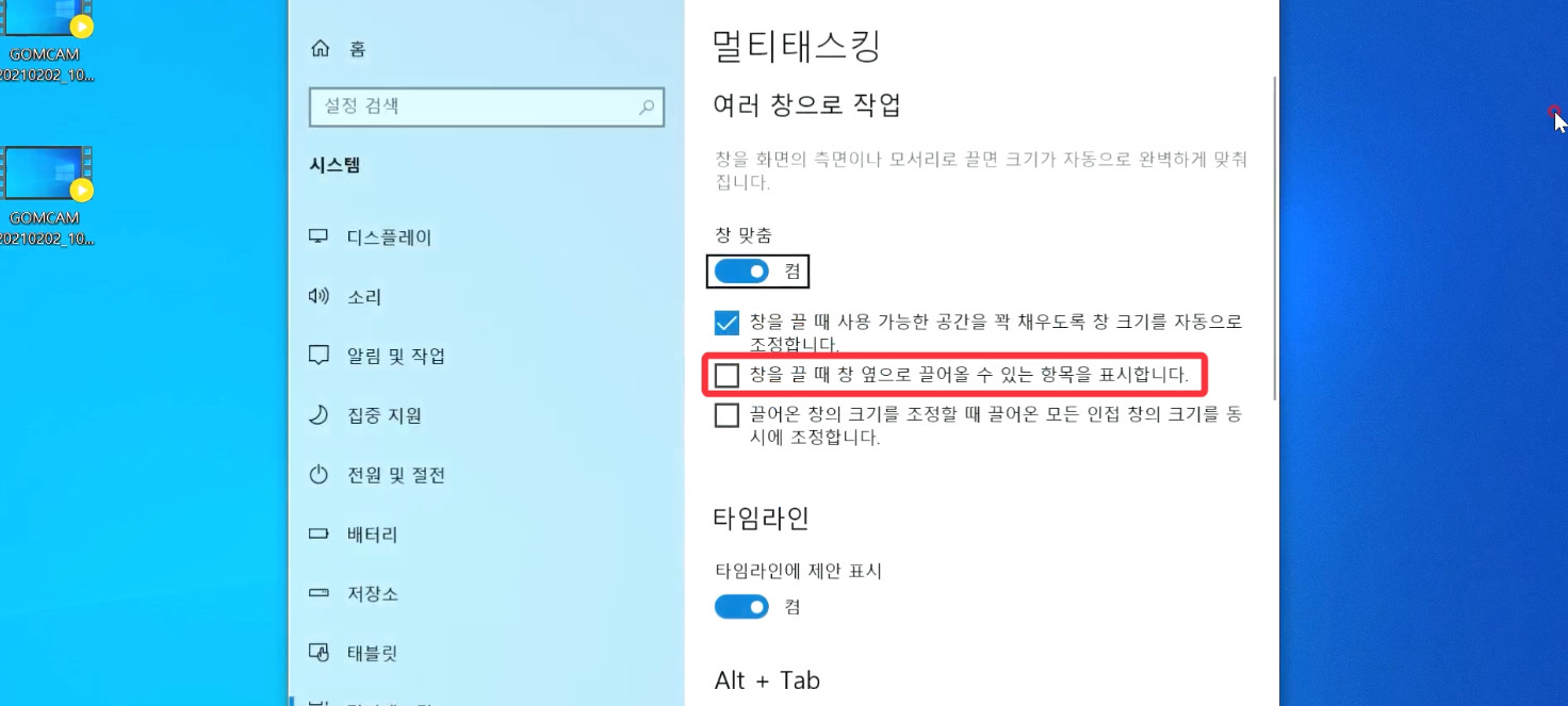 먼저 "멀티태스킹" 설정으로 들어갑니다.