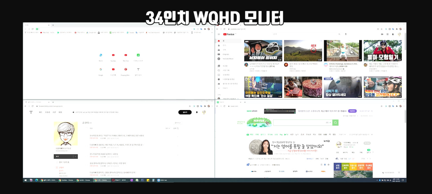 이 분할 기능은 해상도가 높은 모니터에서 활용성이 극대화 됩니다. 굳이 4K 모니터까지 가지 않더라도 QHD모니터급만 되도 활용성이 꽤 많이 올라갑니다.