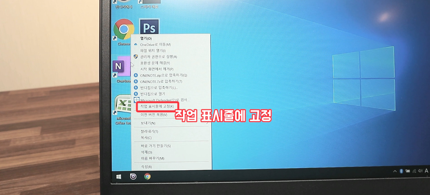 자주 사용하는 프로그램의 아이콘은 바탕화면, 혹은 저와 같이 작업 표시줄에 넣을 수 있습니다.
