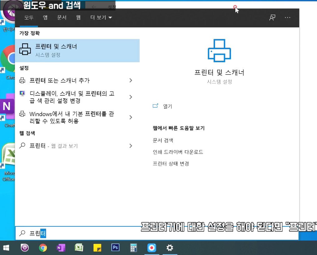 프린터기에 대한 설정을 해야 된다면 "프린터"