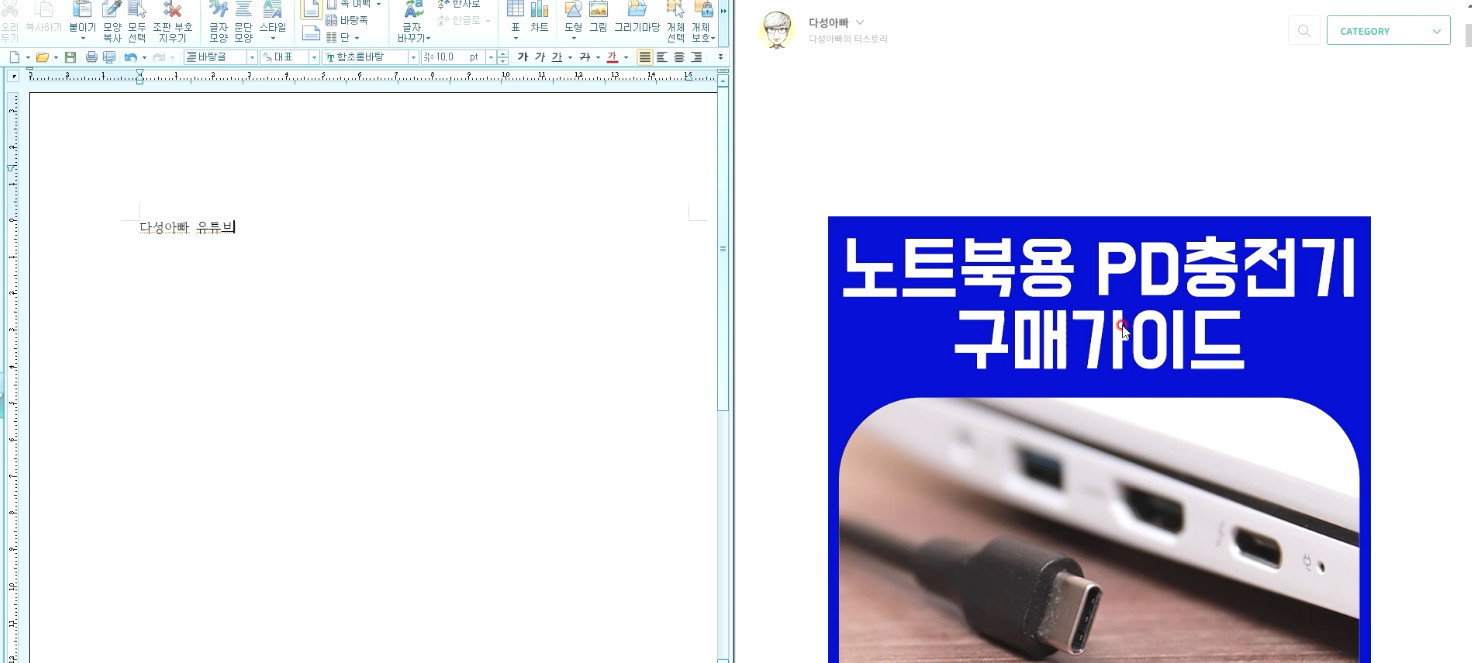 한 쪽은 문서 작업, 다른 한 쪽은 웹 페이지
