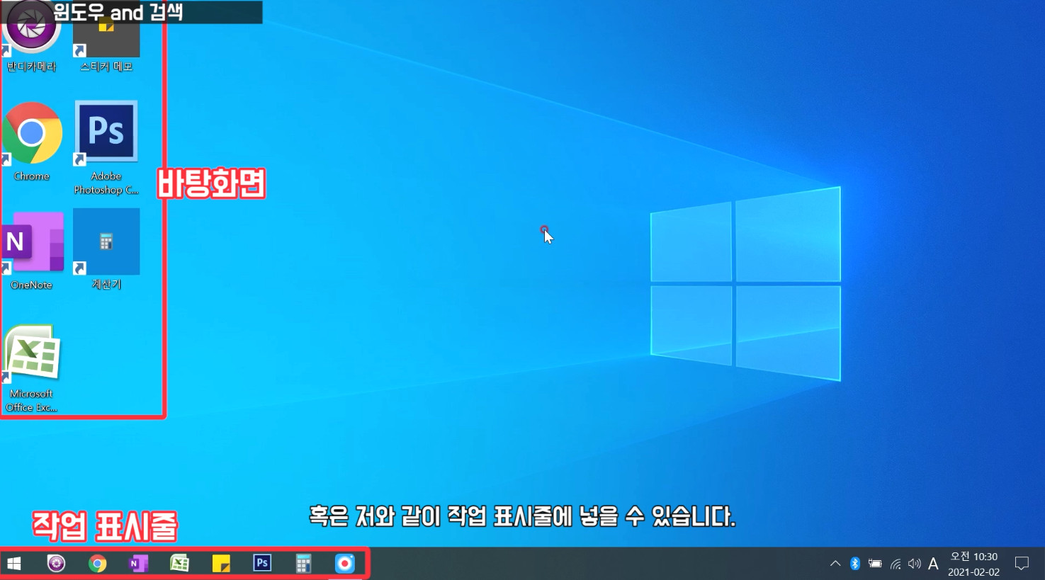 윈도우10의 기본 작업 표시줄은 이러한 형태입니다.
