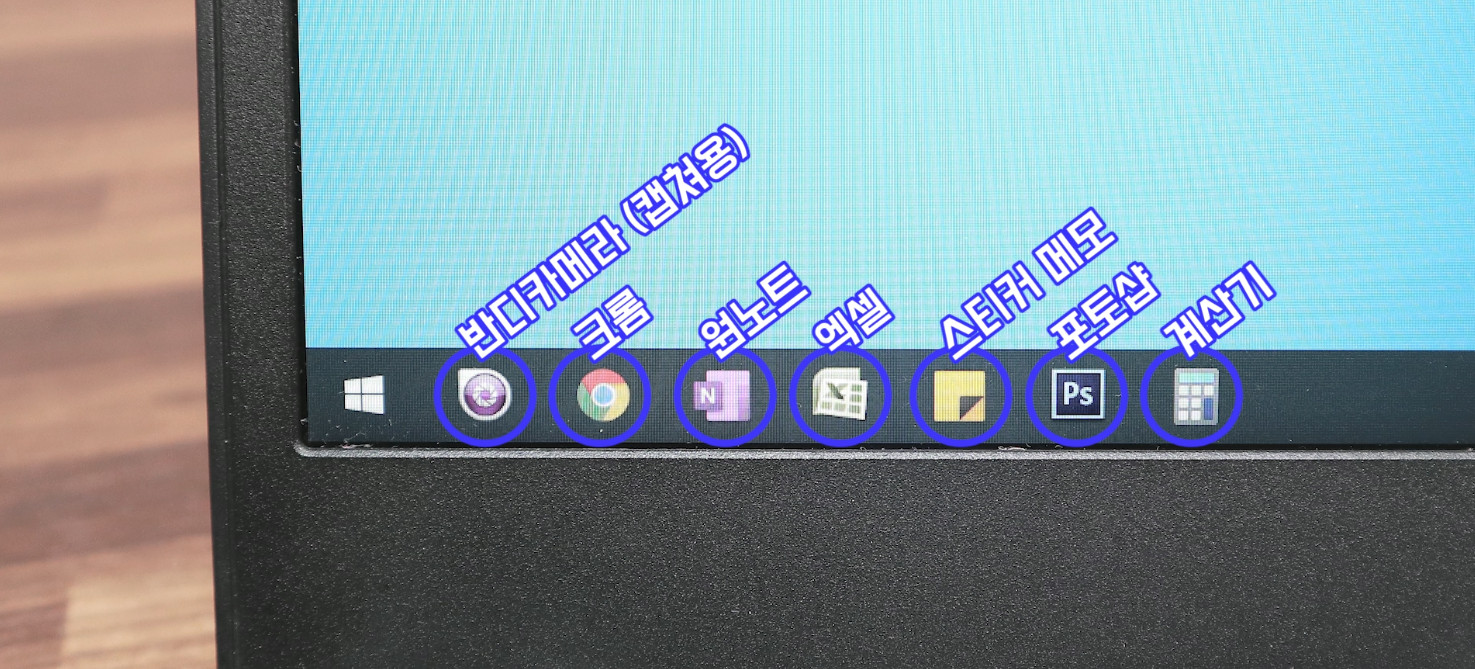 크롬, 원노트, 엑셀, 스티커 메모, 포토샵, 계산기 이렇게 7번까지 사용합니다.