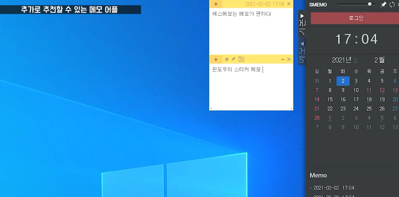 그리고 스티커 메모는 윈도우에 있는 "스티커 메모"와 동기화가 됩니다.
