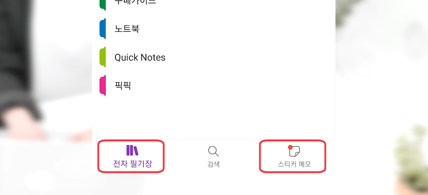 원노트 어플에 들어가서 로그인을 하게 되면 "전자 필기장" 과 "스티커 메모" 이렇게 2개의 메뉴가 보입니다.