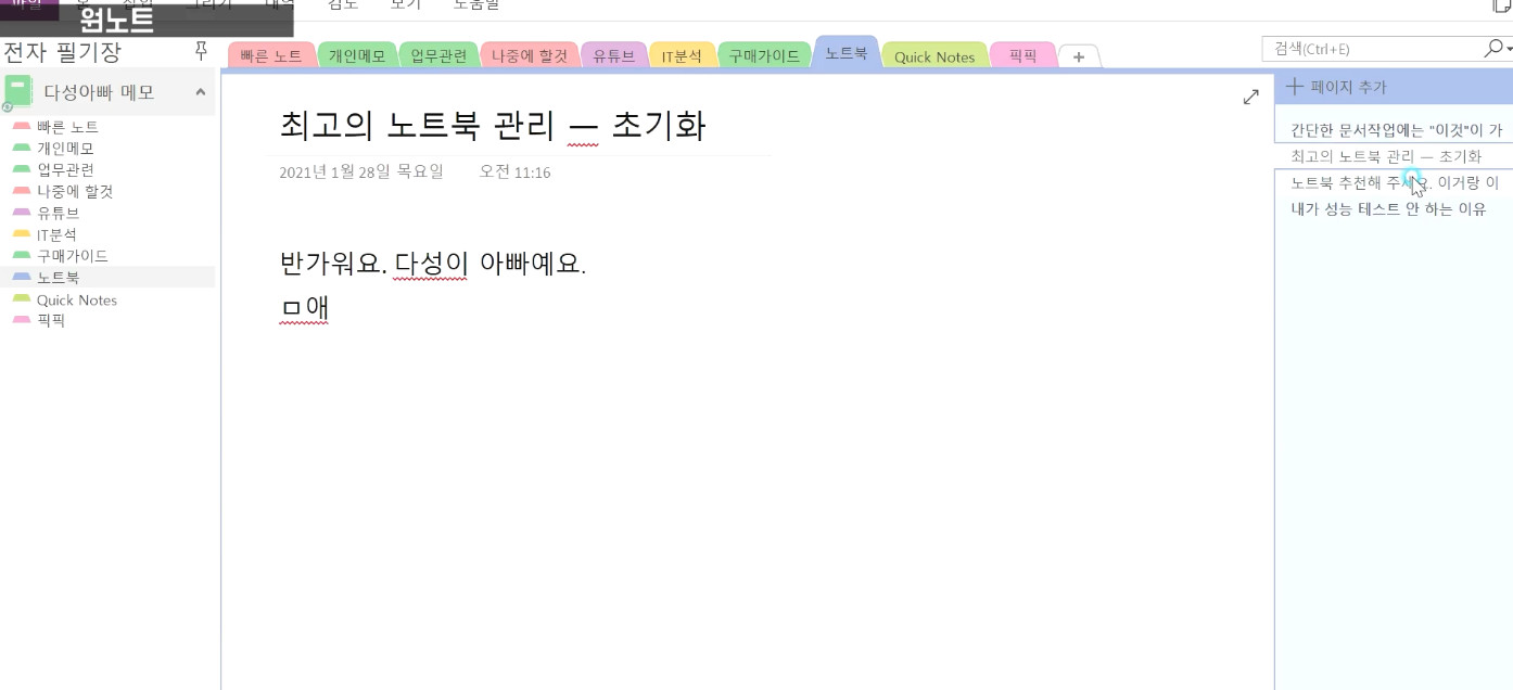 전자 필기장은 일반적인 원노트라고 보시면 되고, 윈도우에 있는 원노트와 동기화가 됩니다.