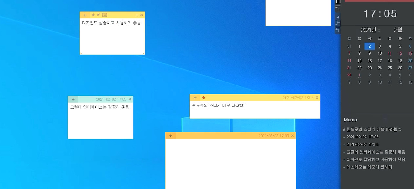 PC프로그램은 윈도우의 "스티커 메모"를 그대로 차용했기 때문에 직관적이면서도 이 스티커 메모 자체가 스마트폰과의 동기화에 있어서 사용성을 증가시켜 줍니다.