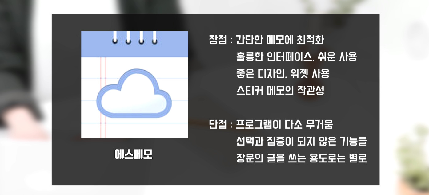 이 대형 회사에 비교할순 없지만 그래도 국내에서는 굉장히 높은 평가를 받고 있는 에스메모도 추천드릴 수 있습니다.