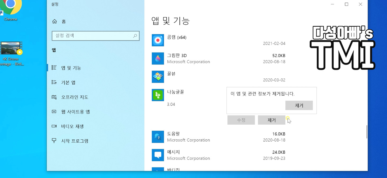이렇게 프로그램 추가 삭제 옵션에 들어가서 과거에 필요해서 설치했지만 지금 쓰지 않는 것들은 정리해 주세요. 여기서 조심해야할 것은 내가 모르는 프로그램은 그냥 건드리지 않는 것이 좋습니다.