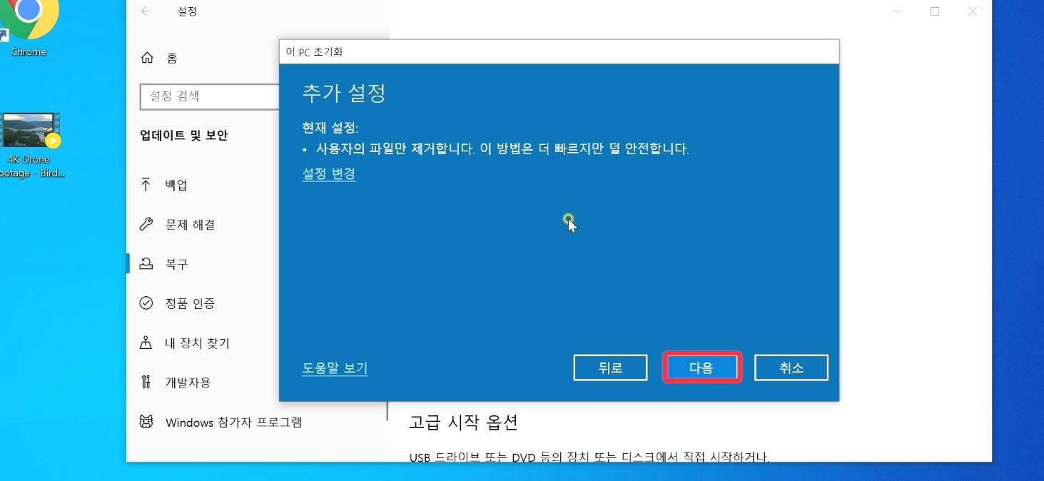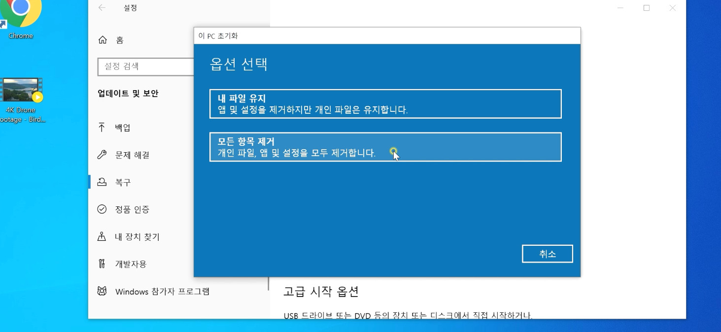 "윈도우 초기화" 입니다.