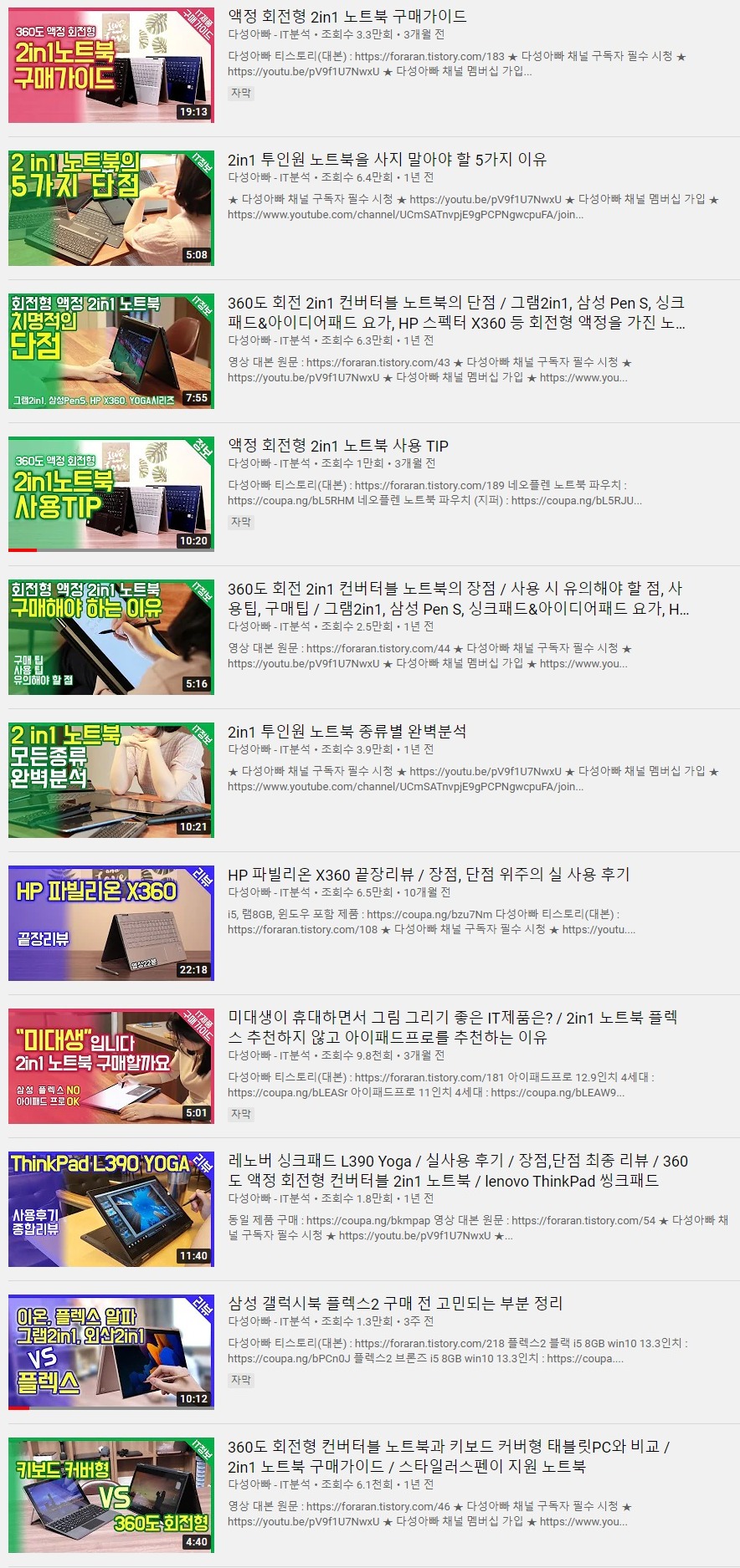 제가 2in1 노트북 관련 리뷰를 많이 하기 때문에 2in1 노트북도 베스트를 뽑아 봤습니다.