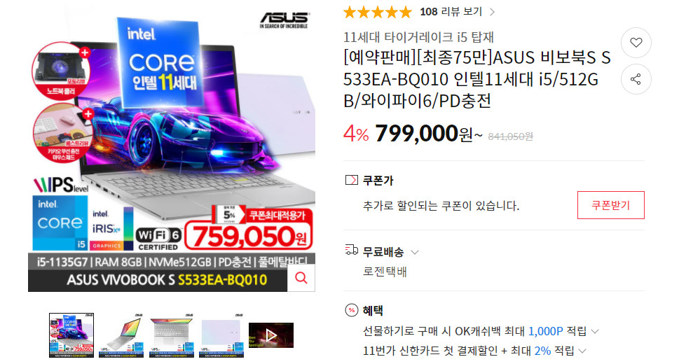 4500U 모델은 물론 타이거레이크 모델도 3월이 되어야 받을 수 있습니다. 비보북이 이정도 까지는 아니었는데 확실히 소비자에게 강한 어필하고 있는 것으로 보입니다.