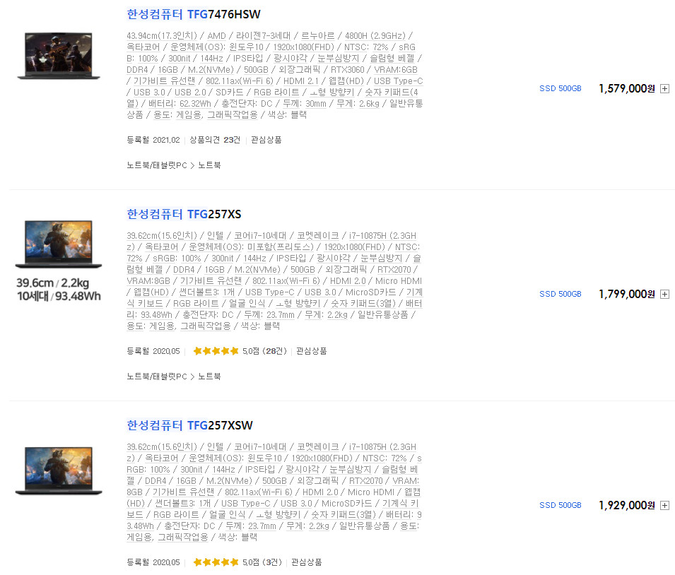 가성비로 접근하면 이 노트북 보다 좋기는 힘들죠. 이 CPU랑 그래픽만 다나와에 검색해 봐도 이 노트북이 얼마나 가성비가 좋은 지 쉽게 알 수 있습니다. 소음 문제가 큰 단점인데, 대부분의 고성능 노트북들이 다 소음 문제를 가지고 있고, 개인적으로 성능만 잘 나오면 어느정도 수긍이 되는 문제라고 생각합니다.