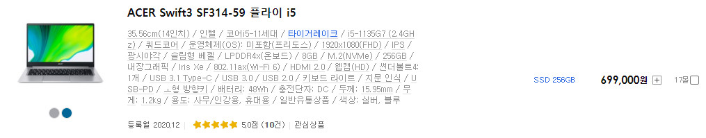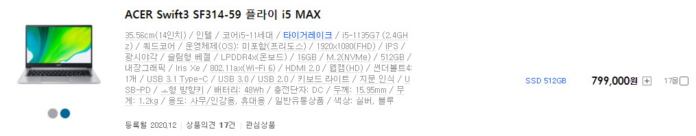 인텔 11세대 타이거레이크 모델은 바로 구매가 가능합니다. 참고로 썬더볼트4를 지원하면서 가격이 그렇게 저렴하지는 않습니다.