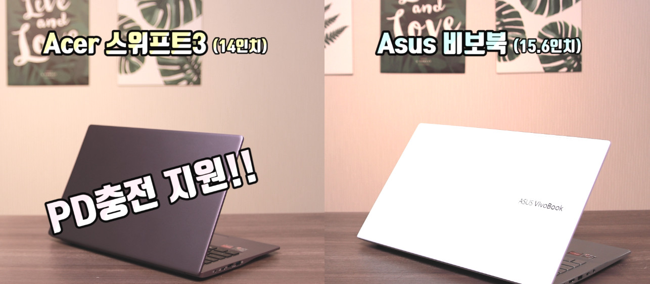 Acer 스위프트3, 그리고 Asus 비보북, 이 둘 중에서 정말 많이 고민했습니다. 성능으로 접근하면 비슷비슷하고 기타 옵션으로 접근하면 얇고 가볍고 PD충전을 지원하는 스위프트가 더 좋습니다.