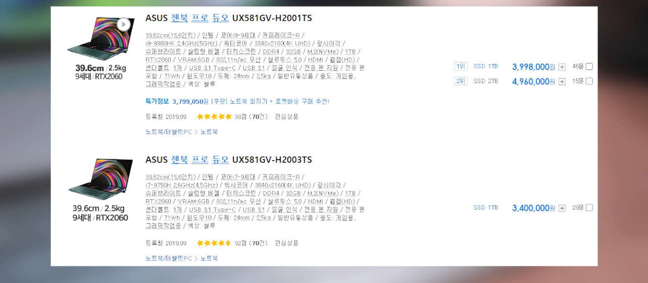 이 이상한 포지션은 이 모델의 전신인 "젠북 프로 듀오"로 부터 시작합니다. 이 완벽한 디자이너를 위한 완성도 높은 고성능 노트북을 14인치로 줄이고 저전력CPU로 바꾸면서 포지션이 이상하게 꼬인거죠.