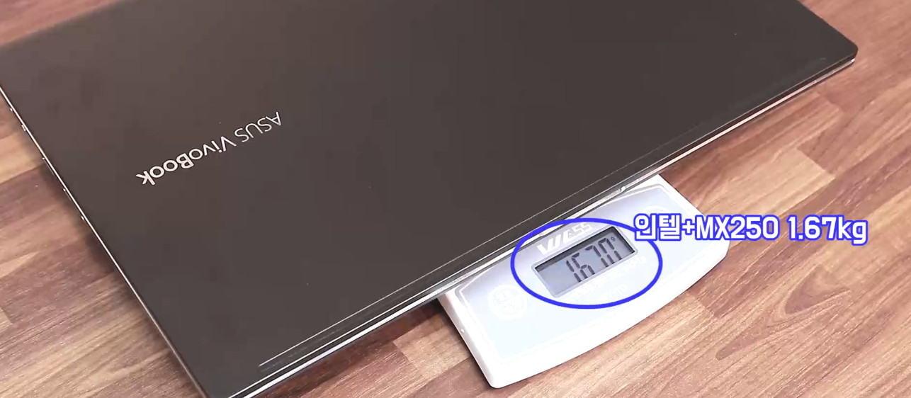 스펙시트를 보면 무게가 1.8kg으로 되어있는데, 제가 직접 잰 무게가 AMD 라이젠 모델 1.66kg, 인텔 10세대에 MX250 모델 1.67kg 정도였고 지금 나오는 타이거레이크 모델 역시 절대 1.7kg을 넘기지 않습니다. Asus 마케팅팀은 일을 전혀 하고있지 않는 것으로 보입니다.