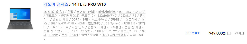 참고로 이번 11세대 타이거레이크 모델은 PD충전을 지원합니다. 그런데 이 부분을 무조건 좋다고 볼 순 없는 것이 할인 받지 않은 기본 가격이 80만 원 정도입니다.