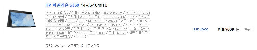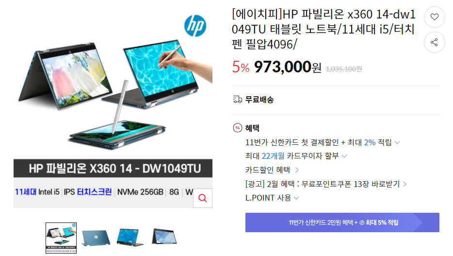지금 파빌리온 X360 타이거레이크 모델이 있긴 한데, 이것저것 기능들과 사양을 올리고 가격도 같이 올라갔습니다. 파빌리온은 저렴해야 장점이 있는 모델인데 타이거레이크의 가격이 그렇게 썩 좋아 보이지는 않습니다.