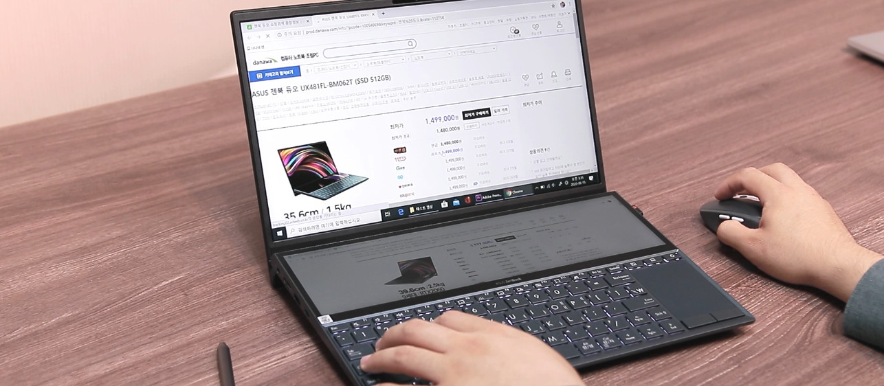 그냥 듀얼 모니터를 재미로 쓰기에는 가격이 높은데, 가격이 높기 때문에 전문가를 노려야 하고, 전문가가 쓰기에는 사양이 낮고. 젠북 듀오는 이 딜레마를 벗어나기 굉장히 힘듭니다.