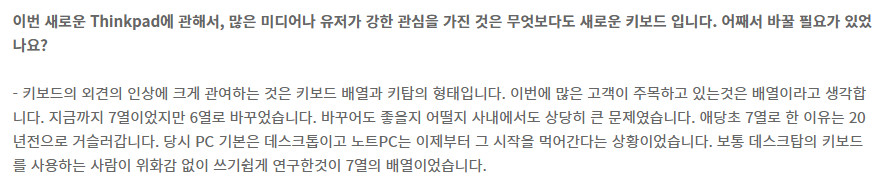 키보드의 변화에 대한 씽크패드의 공식적인 답변은 없습니다. 하지만 시간이 흐르고 개발자들의 인터뷰가 하나씩 나오면서