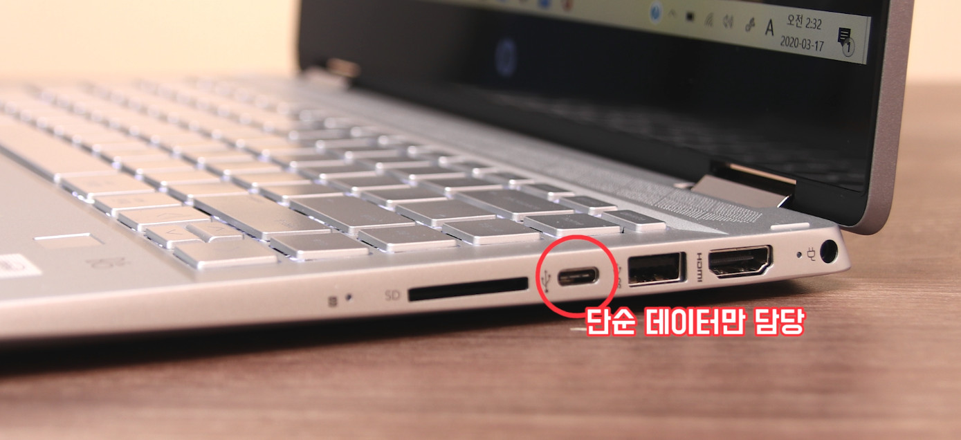 이 노트북은 HP 파빌리온 X360으로C타입 단자는 있지만 PD충전과 디스플레이 출력은 지원하지 않습니다.