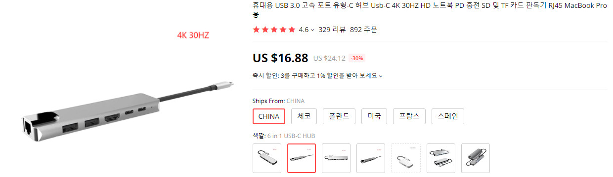 그래서 구매한 것이 알리에서 2만원 정도에 구매한 이 PD멀티허브입니다.