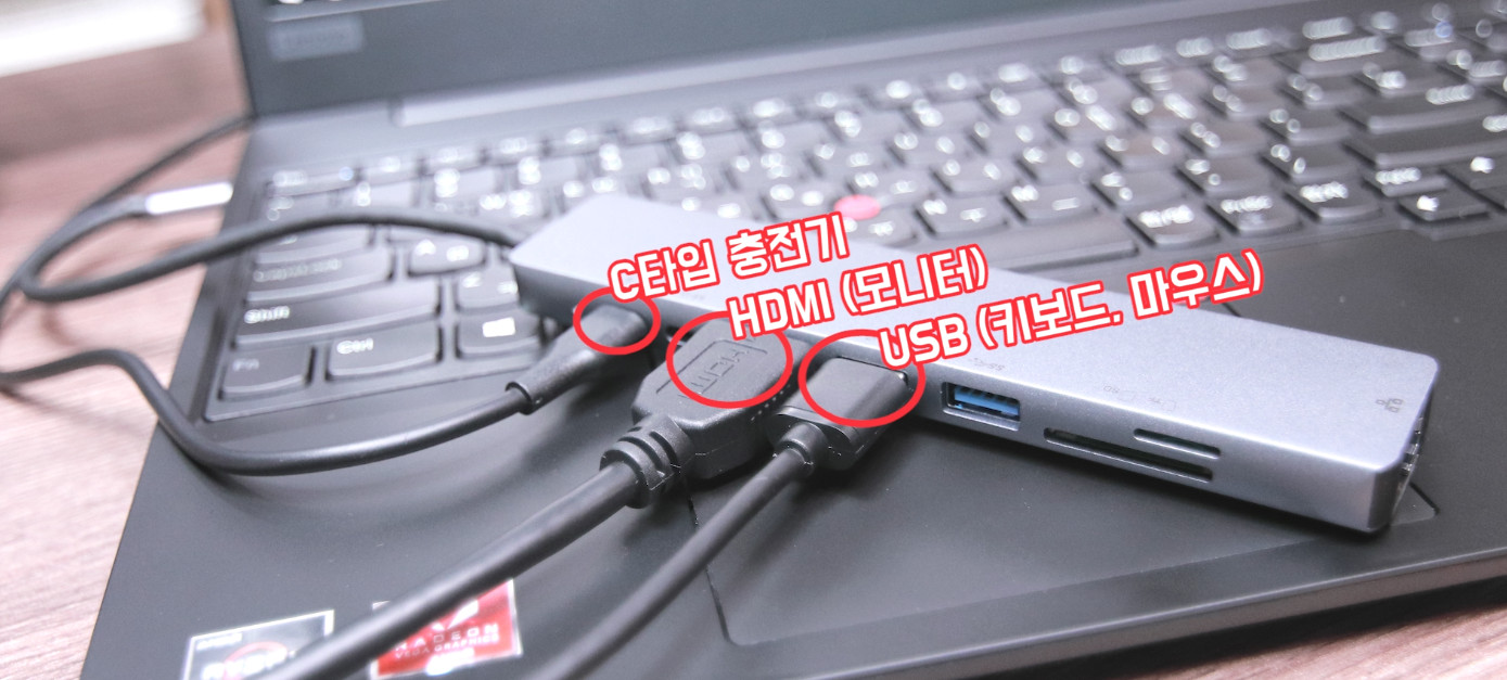 이 기능은 C포트가 있는 모든 노트북에서 지원하는 것이 아니고 PD충전과 디스플레이 출력을 지원하는 C포트가 있어야만 이 PD멀티허브 기능을 모두 사용할 수 있습니다. 지원 여부는 본인의 노트북 상세 스펙이나 제조사에 직접 물어보면 알 수 있습니다.