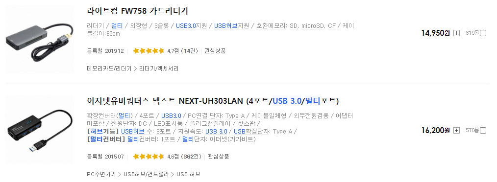 물론 일반 USB3.0 허브를 구매하면 좀 더 저렴하긴 하지만 생각보다 그렇게 저렴하지 않기 때문이죠.