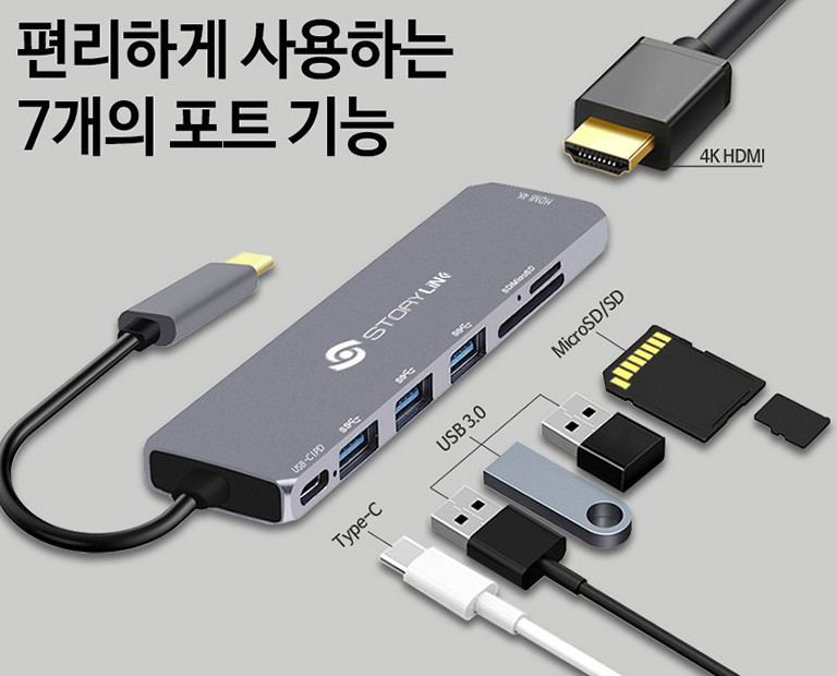 그런데 만약 USB허브가 필요하고, SD카드 슬롯이 필요하다면 이렇게 사용하는 것도 나쁘지 않습니다.