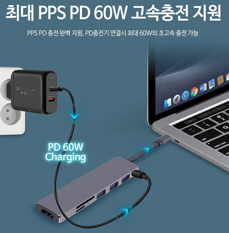 그냥 이 PD멀티허브 사용하면서 나중에 PD충전 지원하는 노트북 구매하면 중복투자 하지 않고 이 제품 그대로 사용할 수 있습니다.