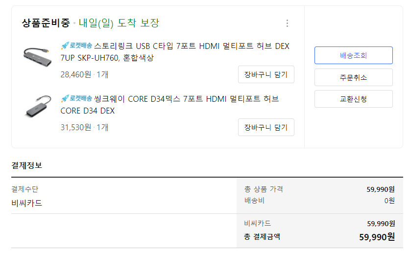 그래서 제가 쿠팡에서 가장 저렴한 PD멀티 허브 2개를 구매했습니다.