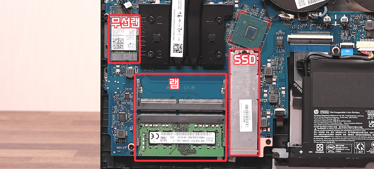 구조적으로 봤을 때 이 플라스틱 더미와 램, SSD, 무선랜카드 위치를 바꾸는 것이 더 맞아 보입니다.
