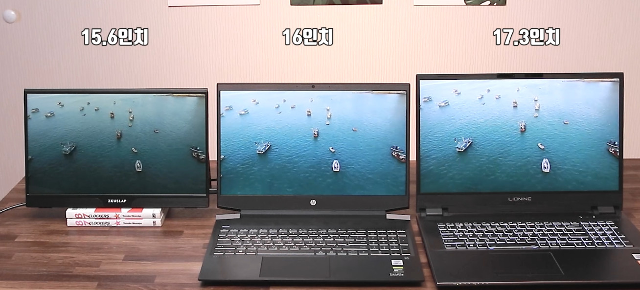 왼쪽이 16인치, 오른쪽이 17.3인치입니다.