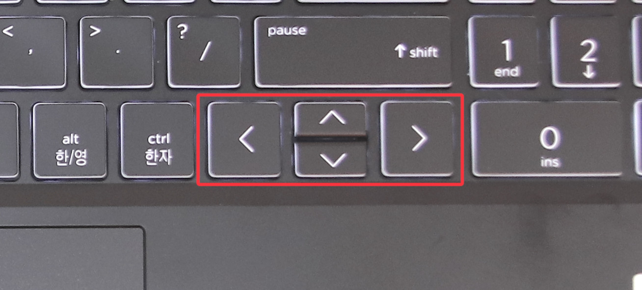 상급 모델인 HP 오멘은 이렇게 독립적 방향키로 나옵니다.