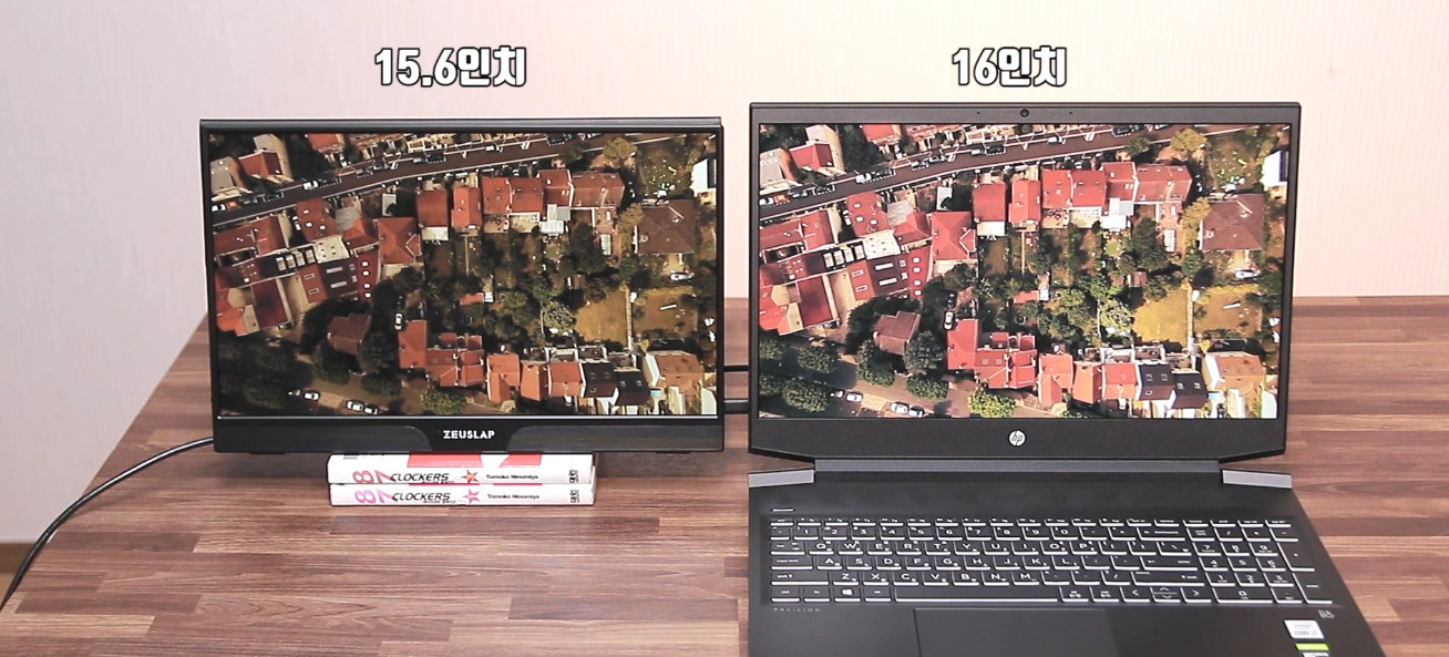 왼쪽이 15.6인치, 오른쪽이 16인치입니다.
