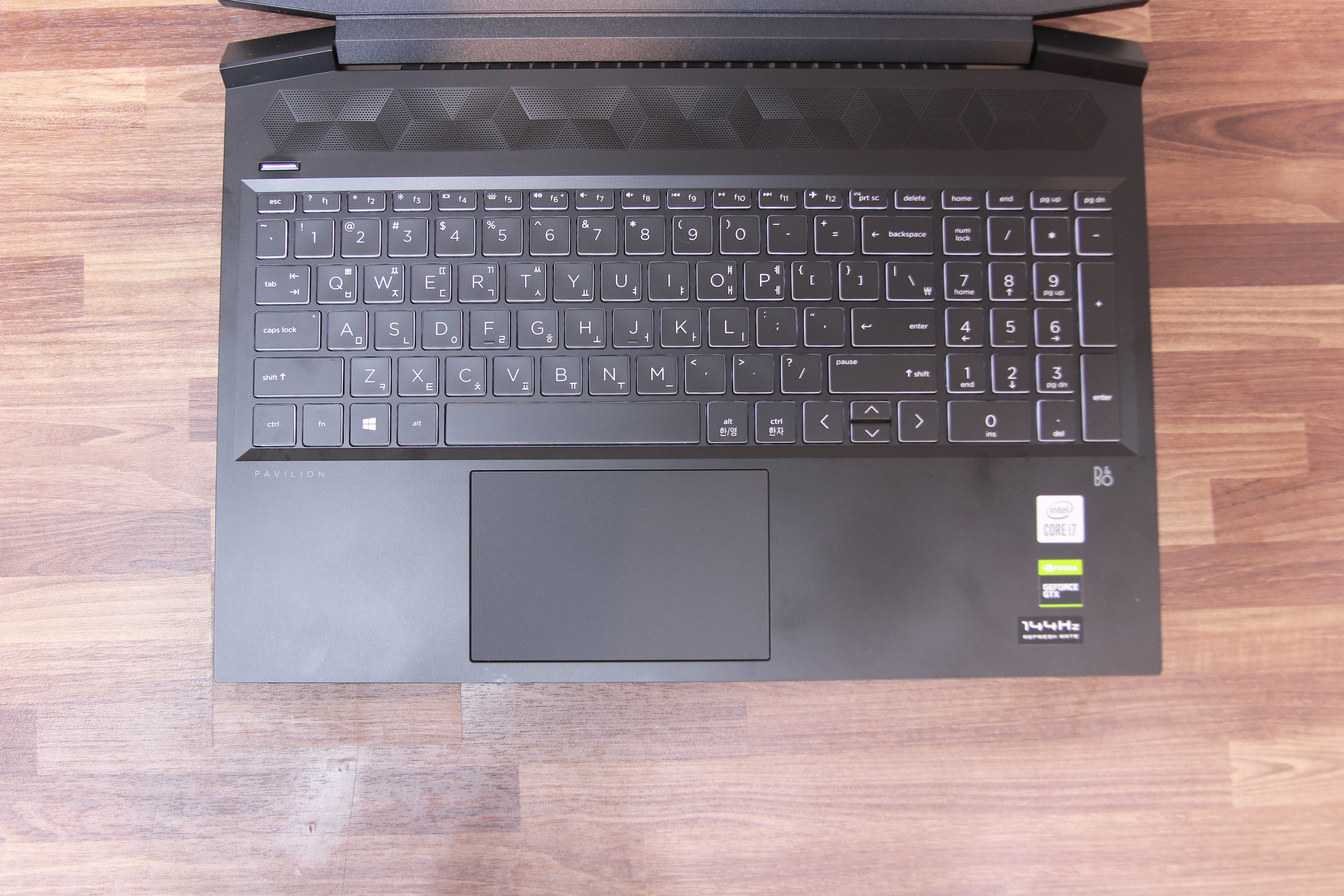사실 독립적 방향키가 들어가면 미적 균형이 깨지기 때문에 외관이 깔끔한 파빌리온 게이밍 노트북에는 이 저전력 노트북의 키패드가 좀 더 디자인적으로 어울리기는 합니다.