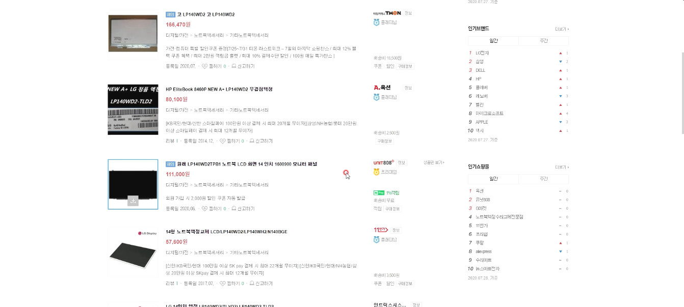 상품들이 나오는데, 당연히 연식이 있는 패널이다 보니 중고제품 위주로 나옵니다.