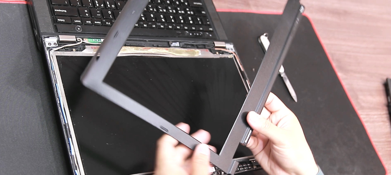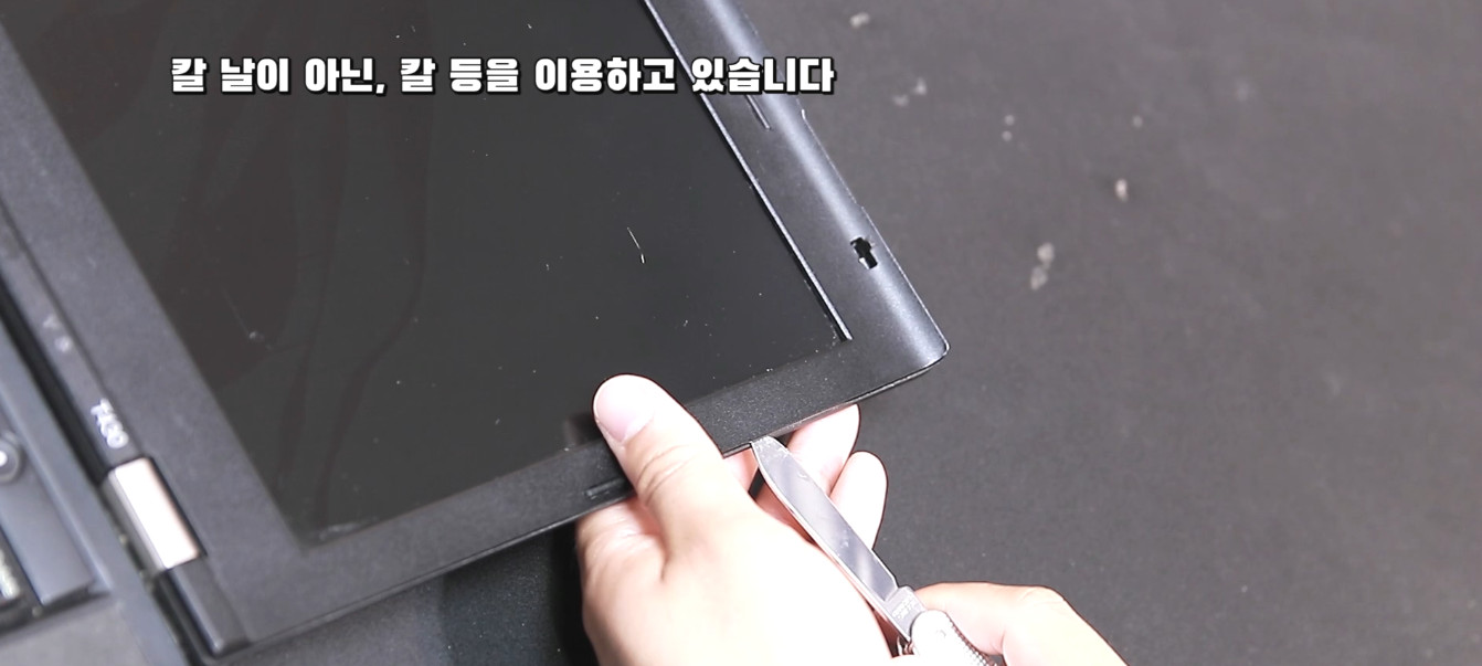 일반적인 노트북 하판 분해와 크게 차이는 없지만 하판 보다 훨씬 얇고 약하기 때문에 경험이 없다면 크랙을 낼 가능성이 높습니다.