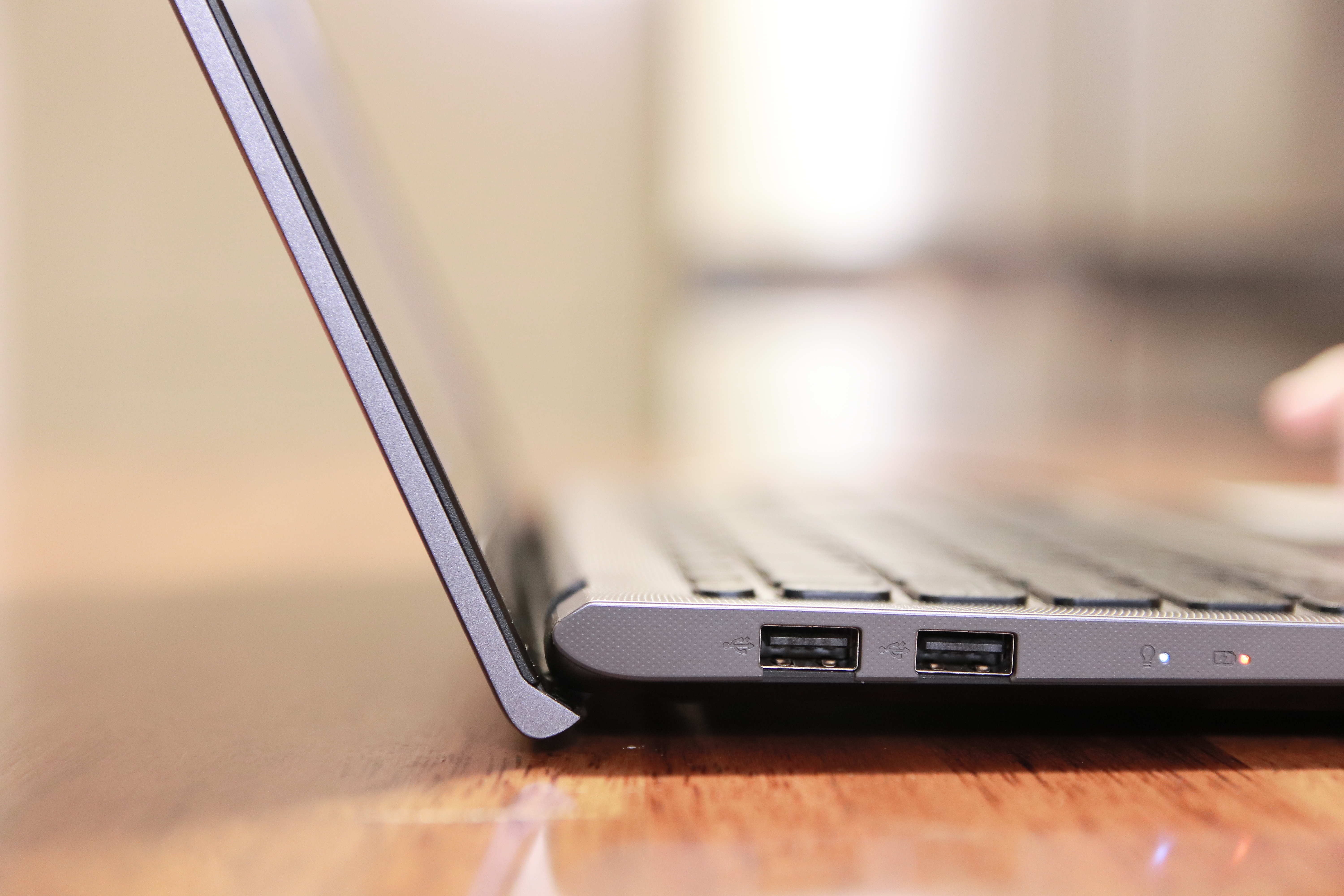 휴대성 좋은 14인치의 Acer 스위프트3와 비교했을 때 이정도 입니다. 세로 길이는 거의 비슷하고 가로길이만 더 길어요. 스위프트3와 비교해서 이정도면 굉장히 컴팩트한 사이즈인 겁니다. 물론 휴대성이 마냥 좋다고 하기엔 배터리용량이 아쉬워요. 진정한 데일리 노트북으로 사용하려면 충전기를 같이 휴대하고 다녀야 합니다.