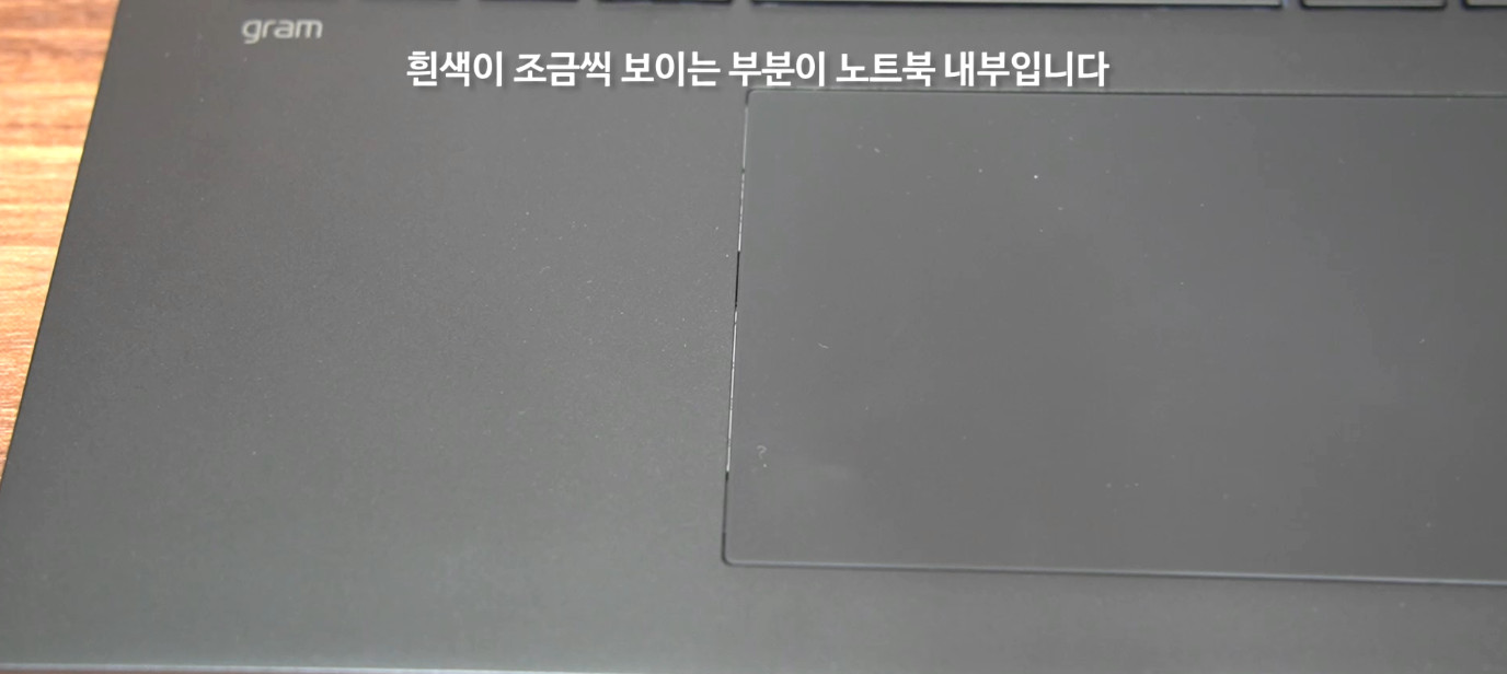 촌스러운 LG로고를 버리고 예쁜 폰트의 Gram을 정중앙에 넣은 것도 디자인적으로 아주 훌륭한 포인트라고 생각합니다.