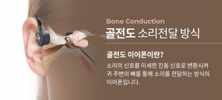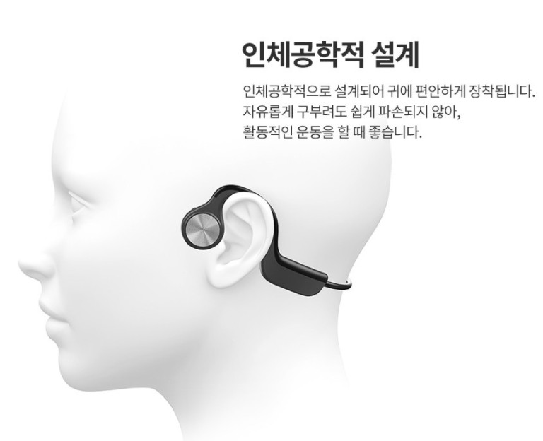 귀로 직접 소리를 듣는 것이 아닌, 진동을 통해 전달 받는 방식으로 운동용, 특히 자전거 라이딩용으로 많이 사용되고 있는 블루투스 이어폰입니다.