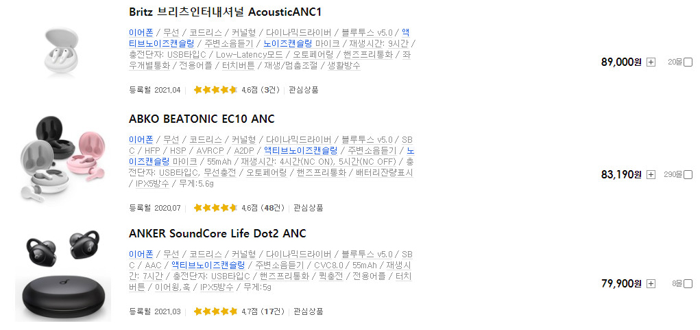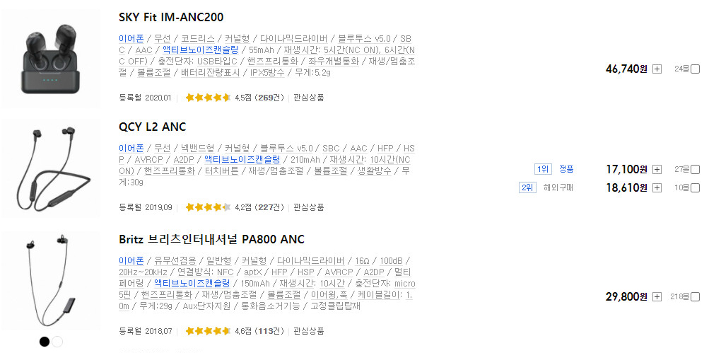 요즘 저가형 블루투스 이어폰에도 액티브 노이즈 캔슬링이 많이 적용됩니다.