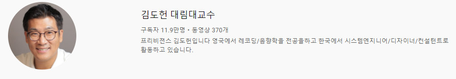 여러분들이 음향에 대해 좀 더 자세히 알고 싶다면 "김도헌 대림대교수" 라는 채널을 꼭 시청해 보세요.