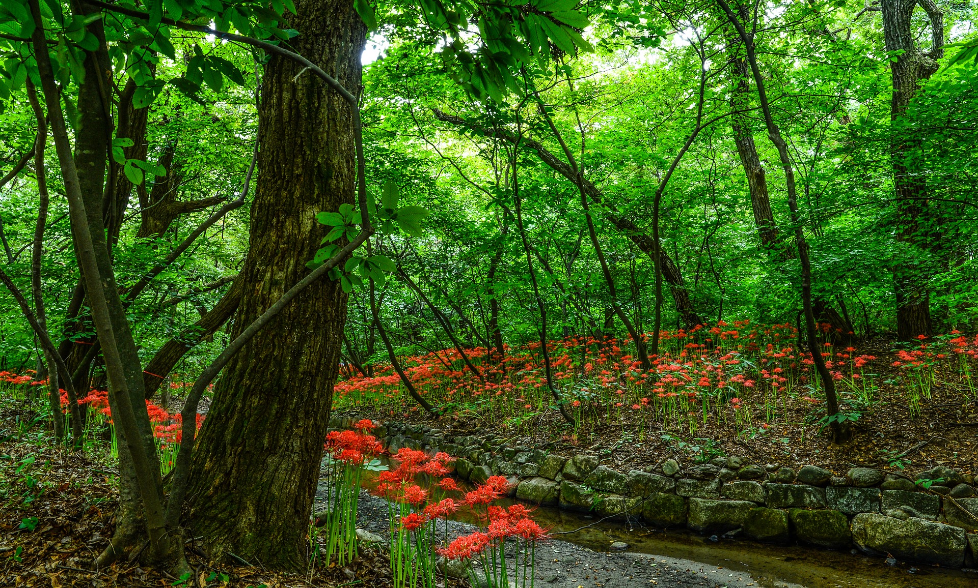 제가 숲 속에 있습니다.