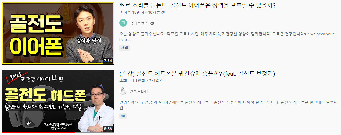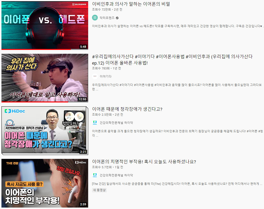 유튜브에 이비인후과 의사 선생님들이 이어폰에 대해 부정적으로 말하는 영상들을 많이 볼 수 있습니다. 이어폰이 청력을 많이 손상시키기 때문이죠.