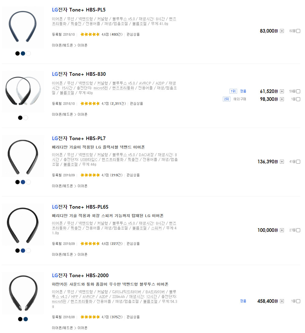 결국 비슷한 가격대로 보면 넥밴드 형태의 제품의 통화 품질이 가장 좋을 수 밖에 없습니다.