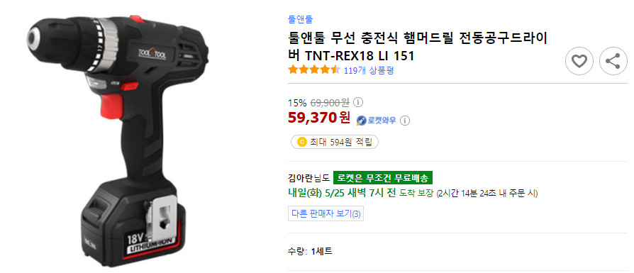 툴앤툴 18V 리튬이온 해머드릴 입니다.