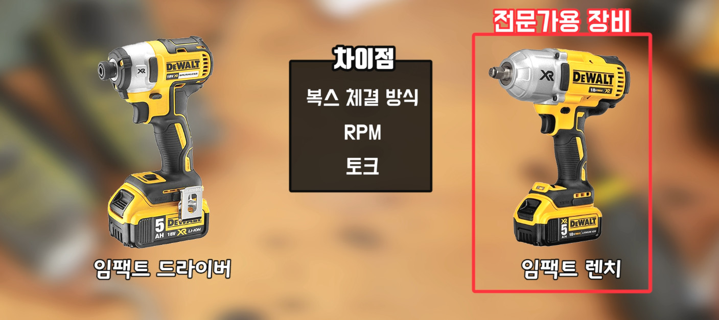 굳이 따지면 좀 더 높은 토크 작업에 특화되어 있는 임팩트 렌치를 좀 더 전문적인 장비로 볼 수 있습니다.